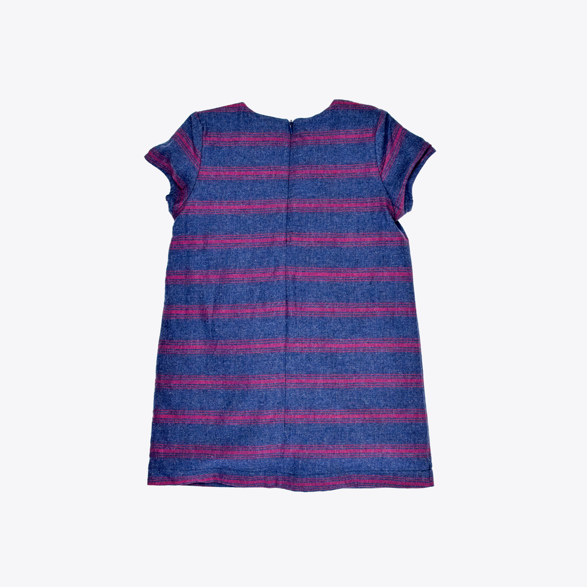 Sophisticated short cap sleeve flannel cotton shift dress in navy and maroon plaid for the girl on the go. Side pockets, soft cotton lining, and invisible zipper on back. Machine washable. Style # M20658
