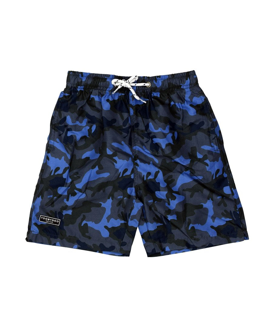 Luxury board shorts with a multi blue camo pattern. Features an elastic waist band, sailor style drawstring, side pockets, full mesh lining, back pockets with velcro closure, special eyelets for rapid air evacuation. Shorts have a cotton feel and are quick drying (100% polyamide). Style # S20164