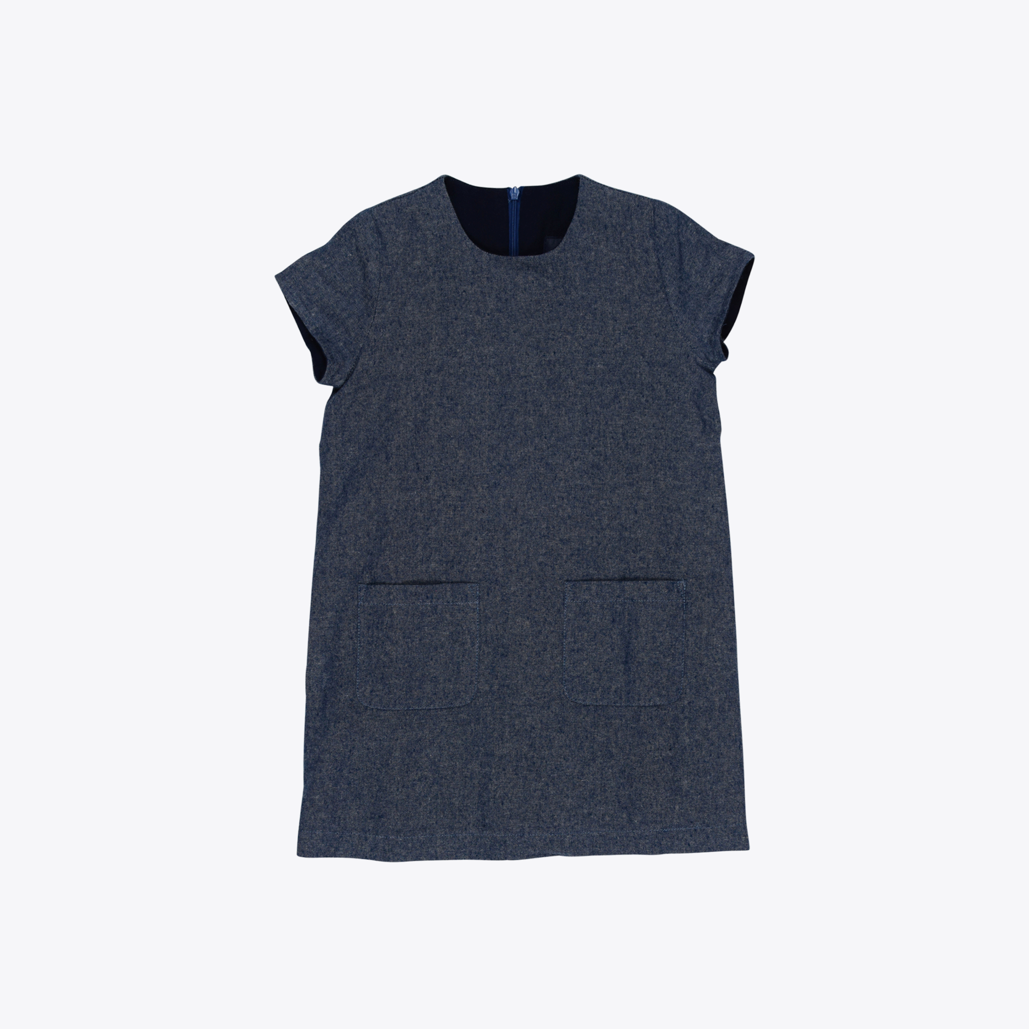 Sophisticated flannel cotton chambray shift dress for the girl on the go. Side pockets, soft cotton lining, and zipper on back. Machine washable. Style # M20409