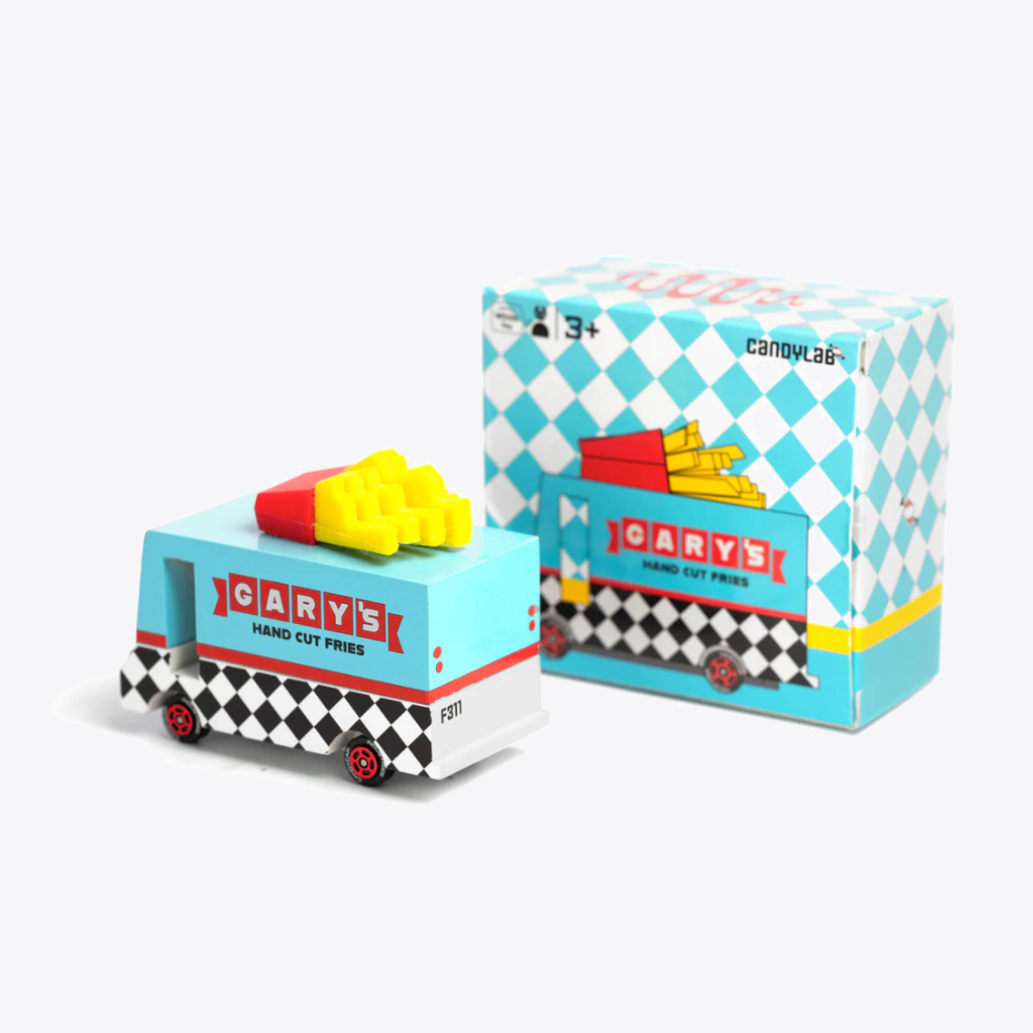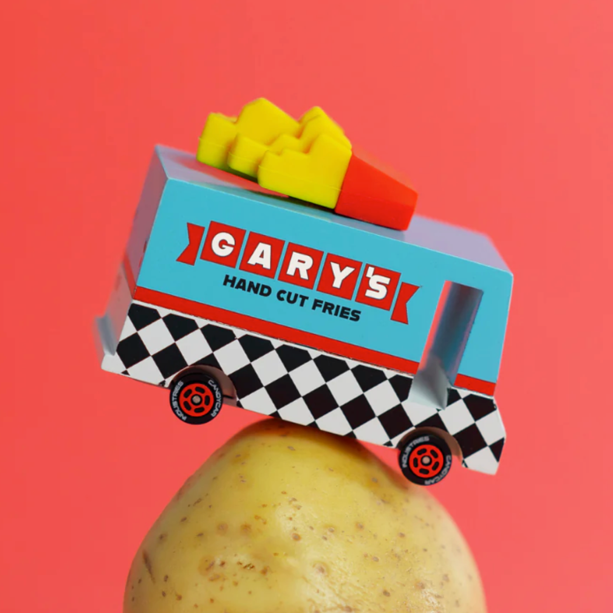 We always felt our Patty’s Hamburger Van was missing something… a side of fries! Our French Fry Van is finally here, dishing out fresh hand cut fries for all to enjoy. Complete with a silicone topper shaped like Gary's signature fries, this van looks ready to dip into your imaginary sauce of choice.