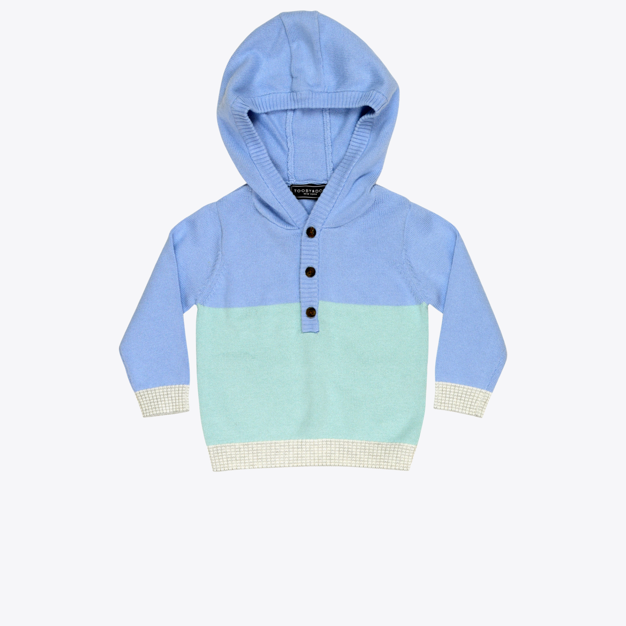 Soft Henley color-block hooded sweater perfect for the beach with buttons down the center for easy dressing. Created in an ultra-soft cashmere blend for a comfortable fit. Luxury knit. Machine washable. Imported. Style # B50003