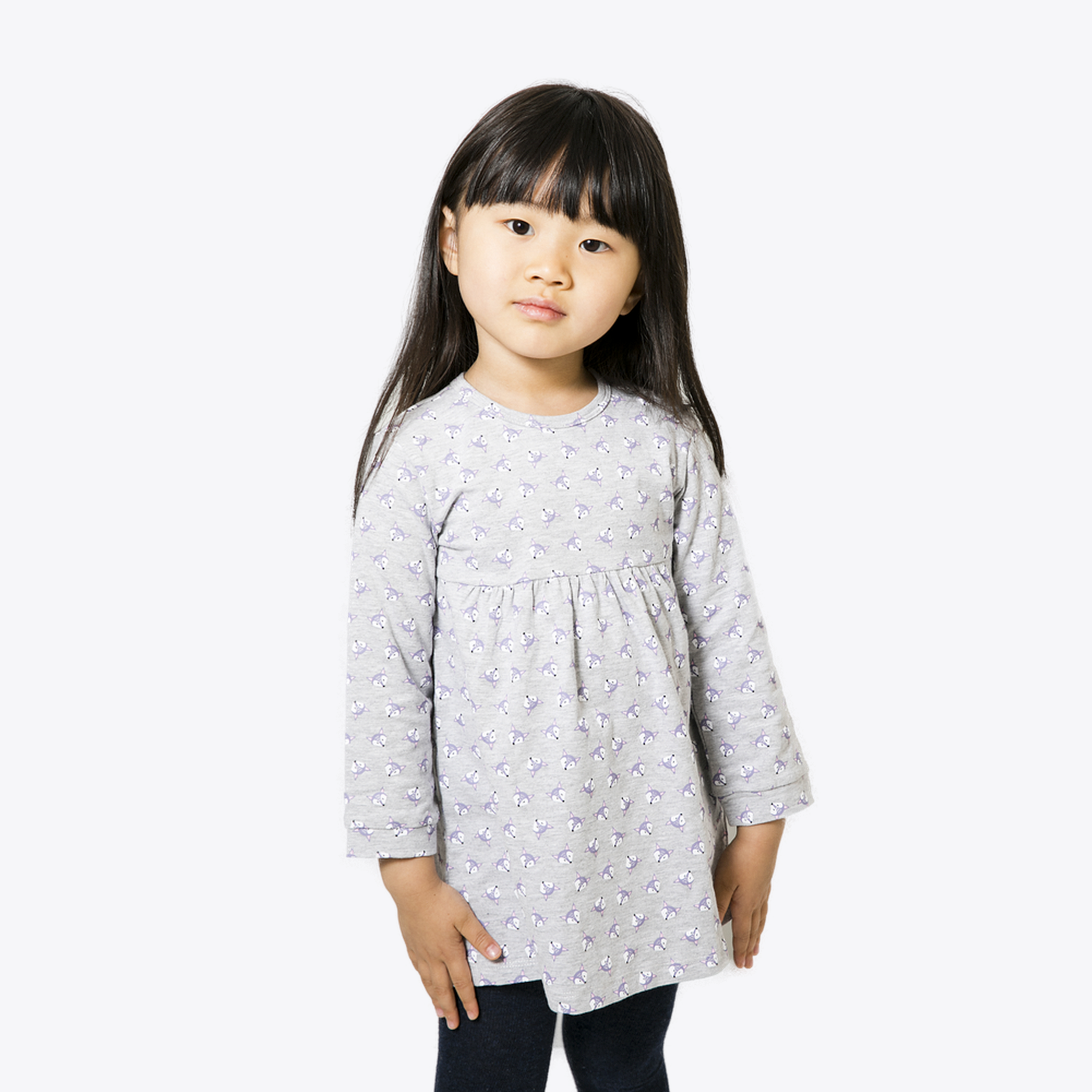 Super cute and easy to wear long sleeve empire waist dress. The perfect dress made with a comfortable soft jersey knit fabric. Pair easily with a Toobydoo legging! Machine washable. Style # M20536