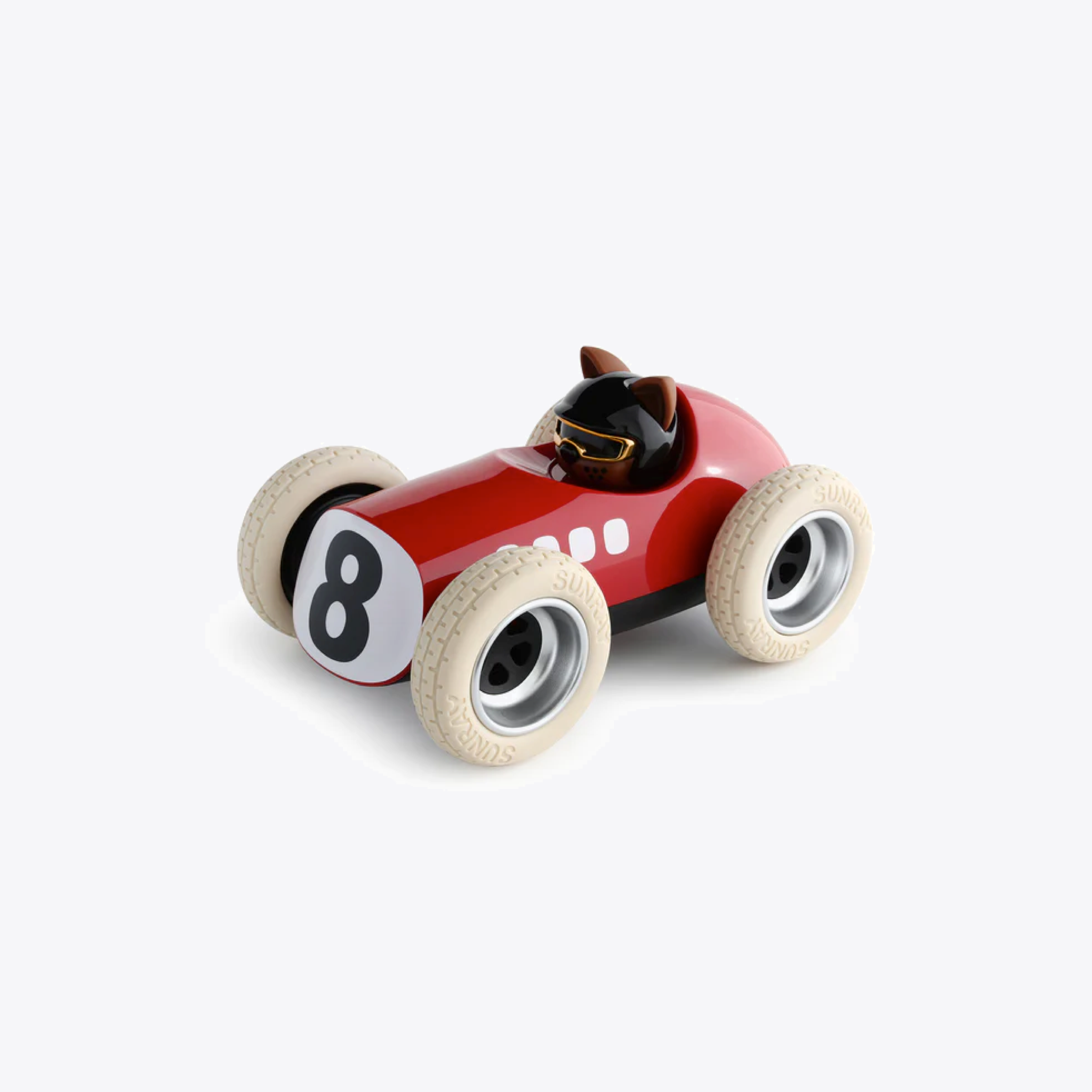 Now, Rufus (Dog Car) has a fierce competitor and he will need to wear his best game face. Let’s talk about those crazy wheels! The thinking behind the extravagant shape is an amalgamation of the beefy 80’s yo-yo and rally car wheels of the same era and yes, they are as impossibly deep as we could make them and to give them an even wider stance we’ve added that exaggerated lip. We call these wheels the 5 spoke wacky classics wrapped in Sunray rubber. Anyway, let’s not waffle. Line up Rufus and Karlos on the grid and let’s get racing.