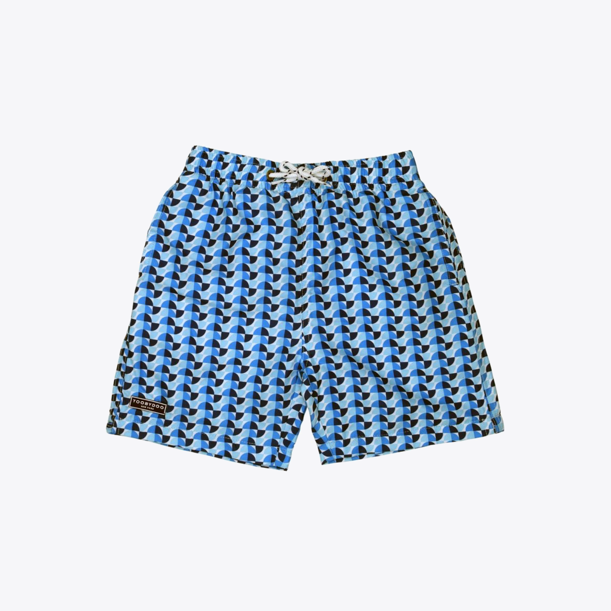 Luxury board shorts with a Rio mosaic pattern. Features an elastic waist band, sailor style drawstring, side pockets, full mesh lining, back pockets with velcro closure, special eyelets for rapid air evacuation. Shorts have a cotton feel and are quick drying (100% polyamide). Style # S20161