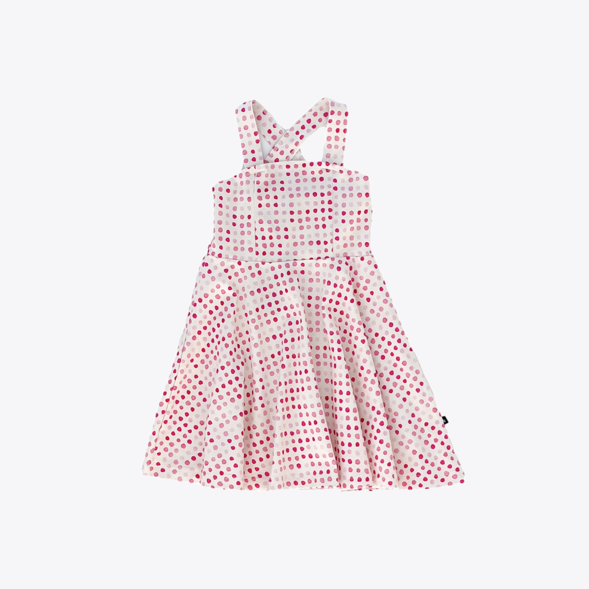Tank skater dress in playful pink and white dot pattern! Created in ultra soft cotton with a hint of stretch. Machine washable. Style #M20722