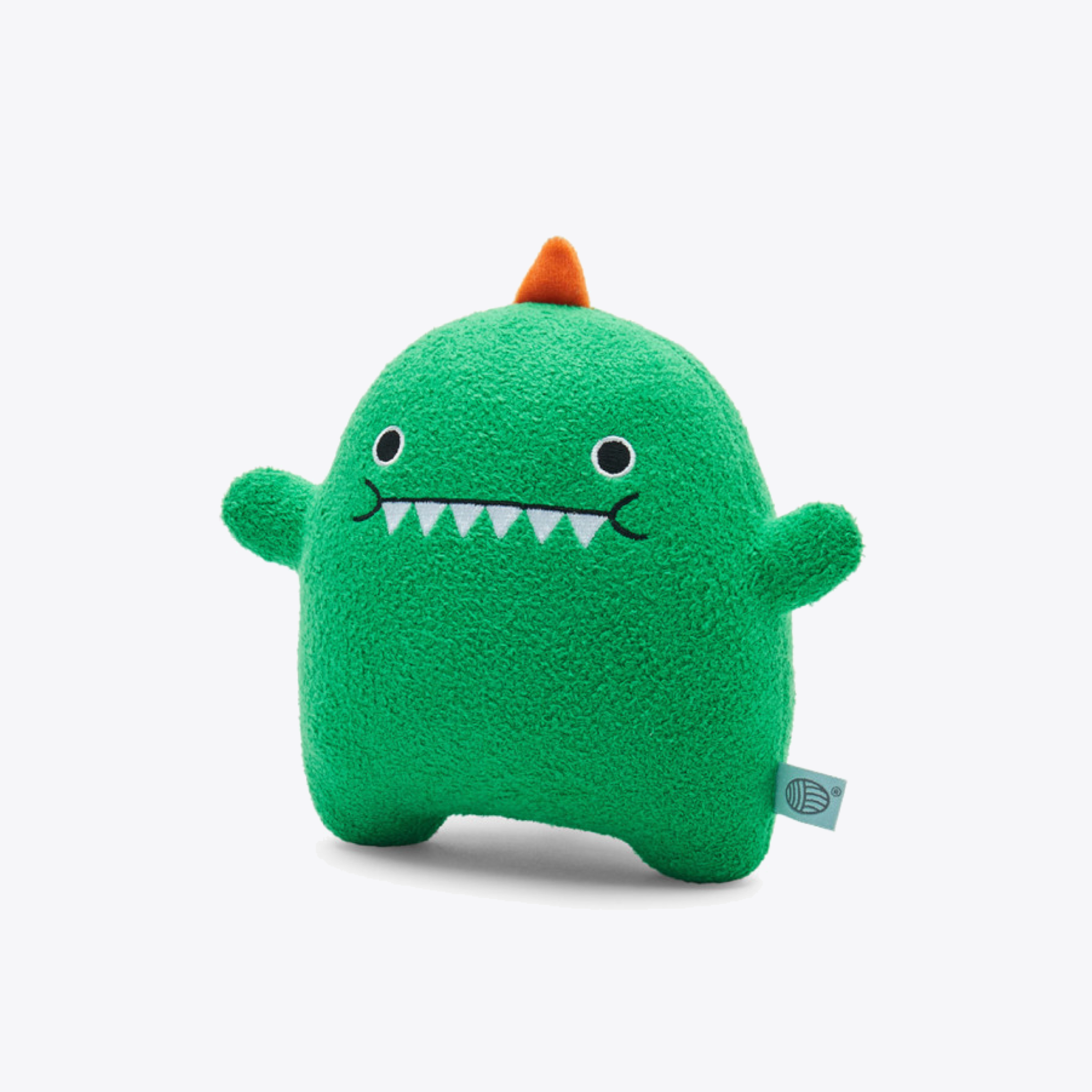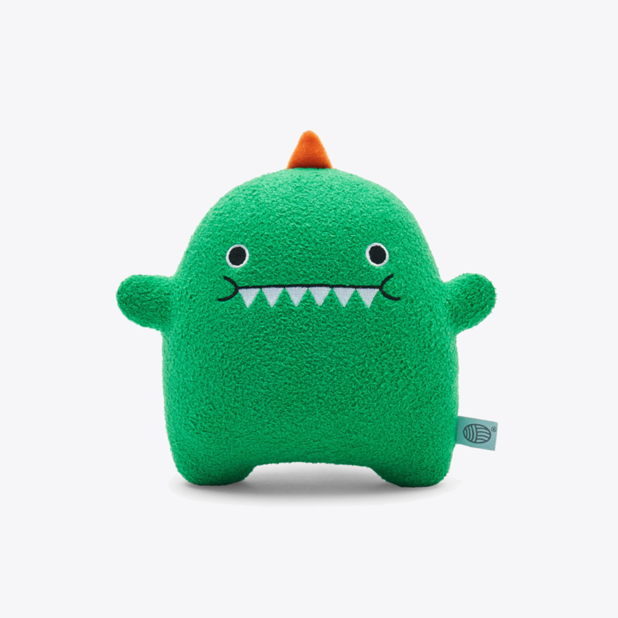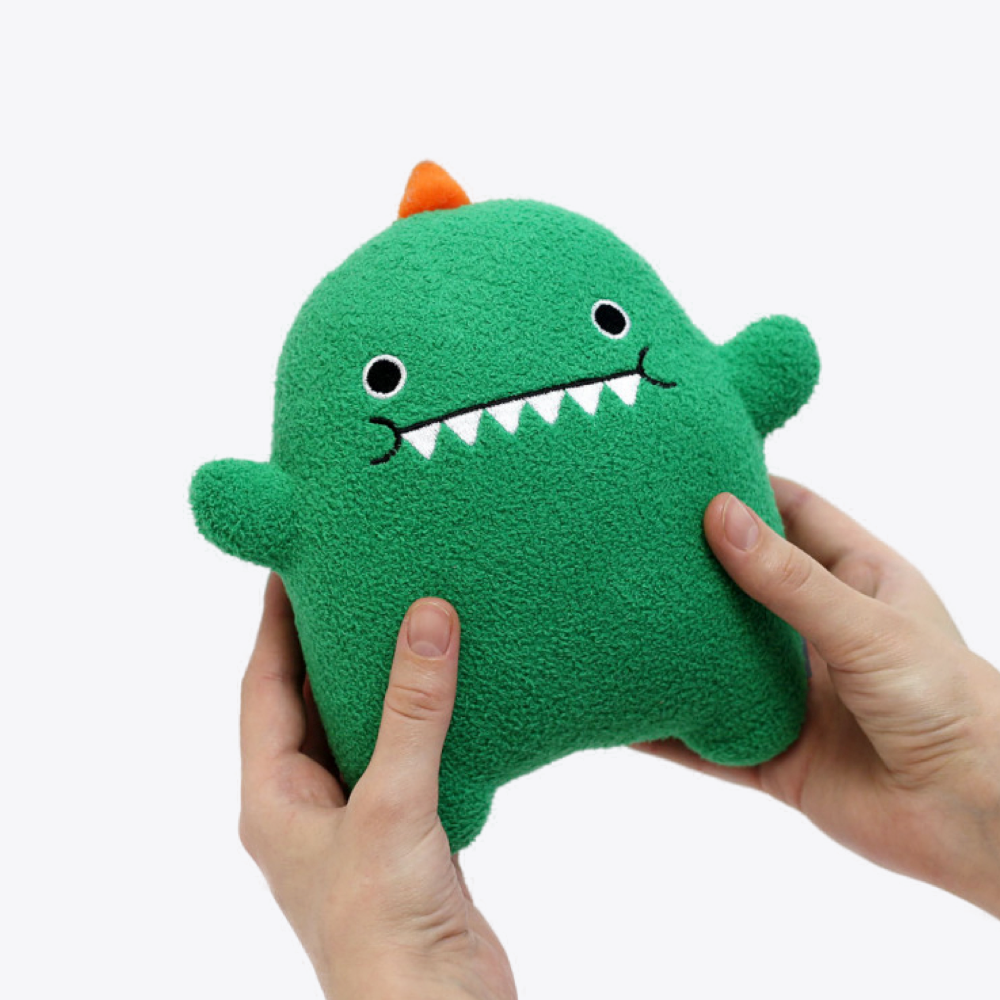 Ricedino has a set of scary dinosaur teeth but has a big heart! This sweet Ricemonster has a soft green body, an embroidered face, and a bright orange spike on the head. Dino makes a great companion for little ones!