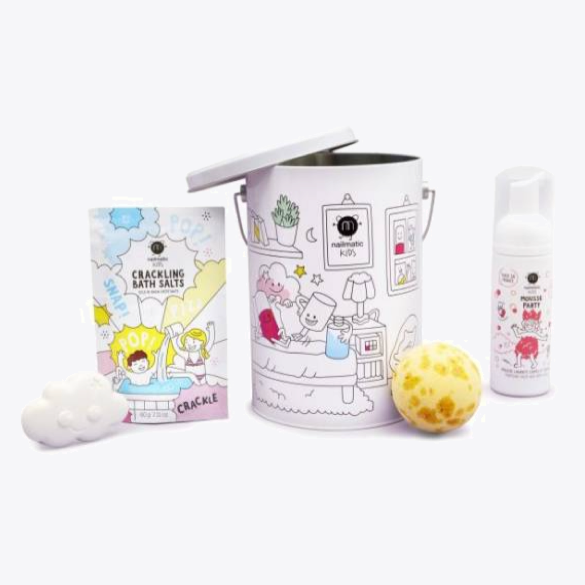 The magic box concept: a beauty and bath selection to make bath and pampering time ten times better. The kids' water-based polish comes off with warm soapy water. It is guaranteed phthalates, formaldehyde, toluene, and fragrance-free.