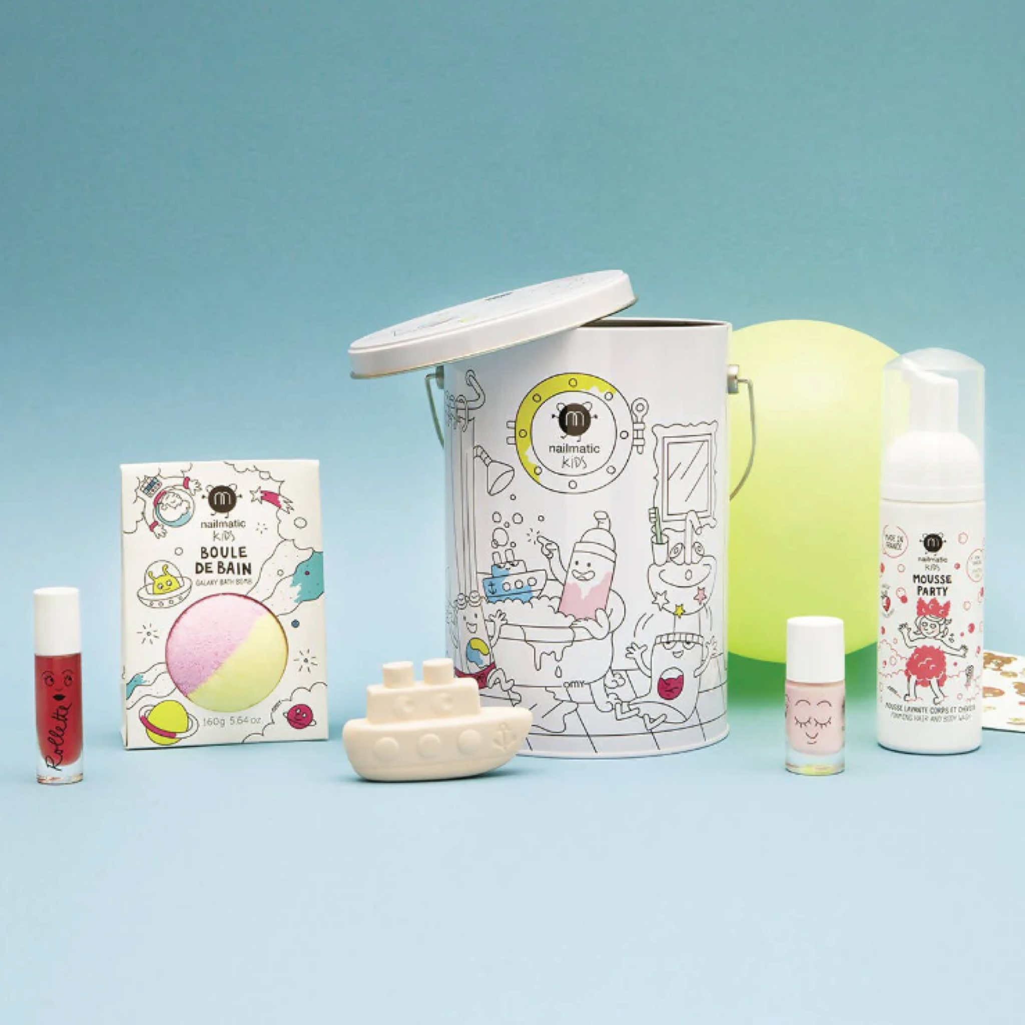 A ready-to-offer kid’s box for her or her best friend! With such a fun design, the magic box can be reused as many times as the kids’ imagination allows. Includes: One nail polish, one lip gloss, one bath bomb, one soap, one mousse, temporary tattoos, and one balloon. Dermatologically tested. Vegan; cruelty-free. Made in Europe with colors and fun.Not suitable for children under three. Use under parent supervision. Imported.