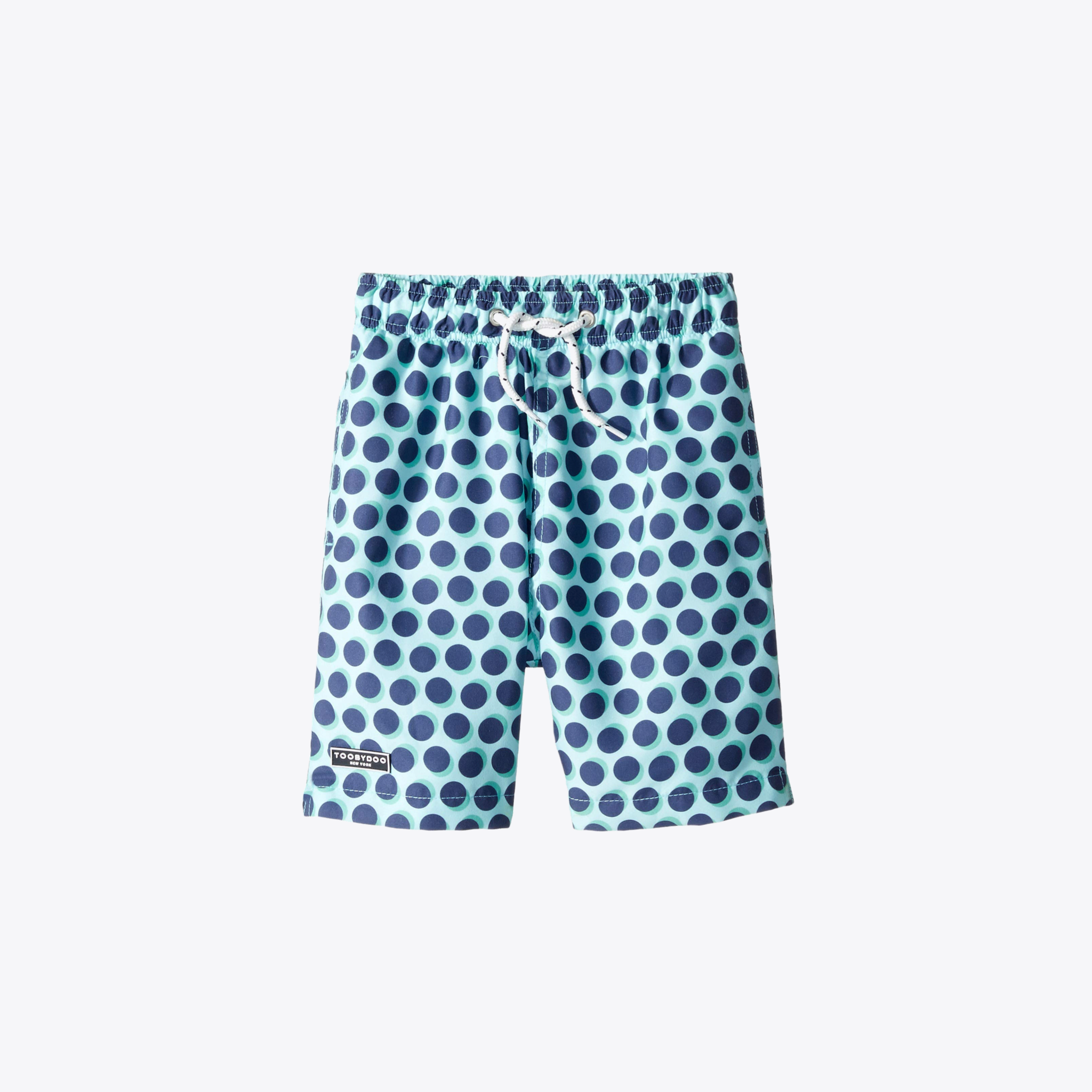 These luxury board shorts with a funky dot on dot print with dark seafoam background is sure to inspire everyone to hit the beach. Features an elastic waist band, sailor style drawstring, side pockets, full cotton mesh lining, back pockets with velcro closure, special eyelets for rapid air evacuation. Shorts have a cotton feel and are quick drying (100% polyamide). Style # S20123