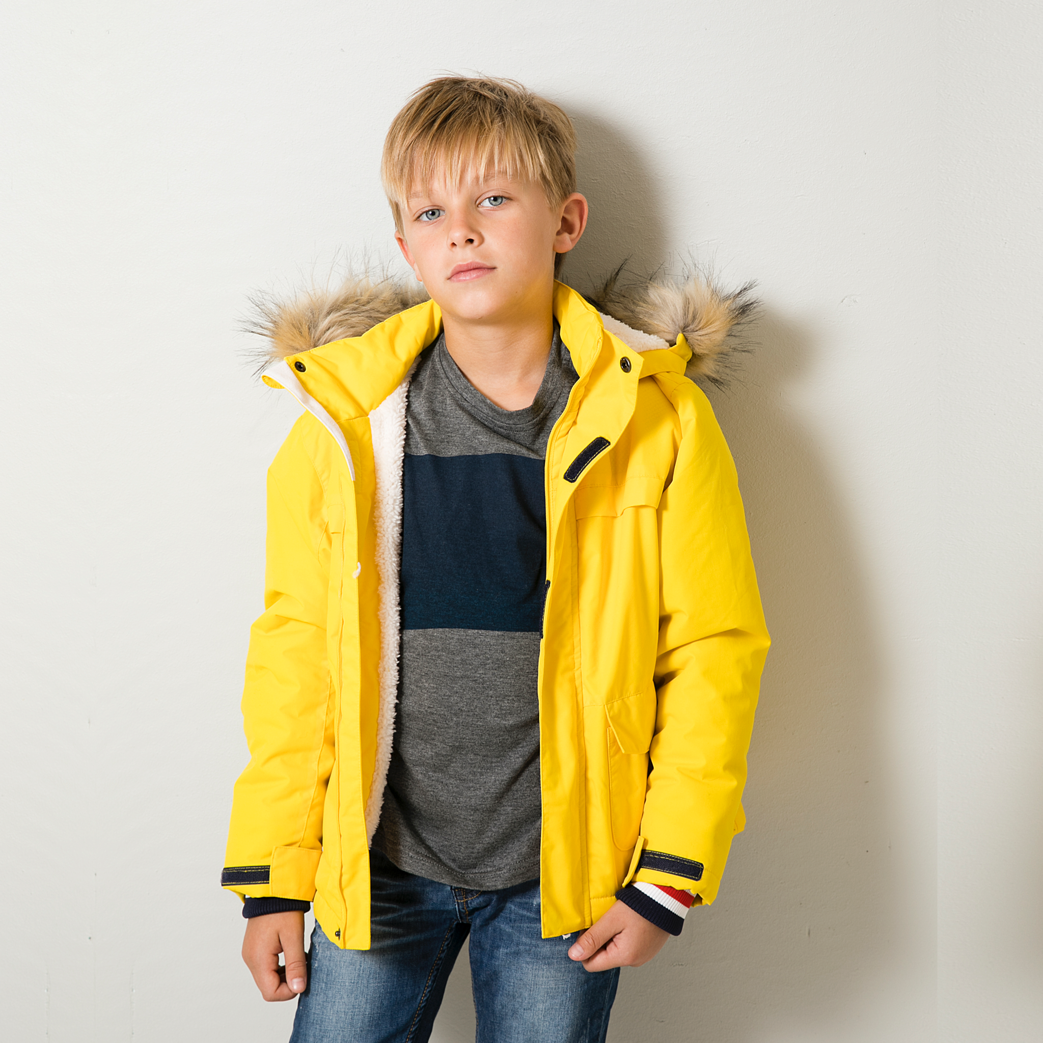 Warm up in the super cool fleece lined Parker parka that will keep you warm. Attached hood with soft faux fur trim. Stand collar with snap closure. Long sleeves with contrast ribbed cuffs. Hand pockets with foldover flaps.Machine wash cold. Style # M90030